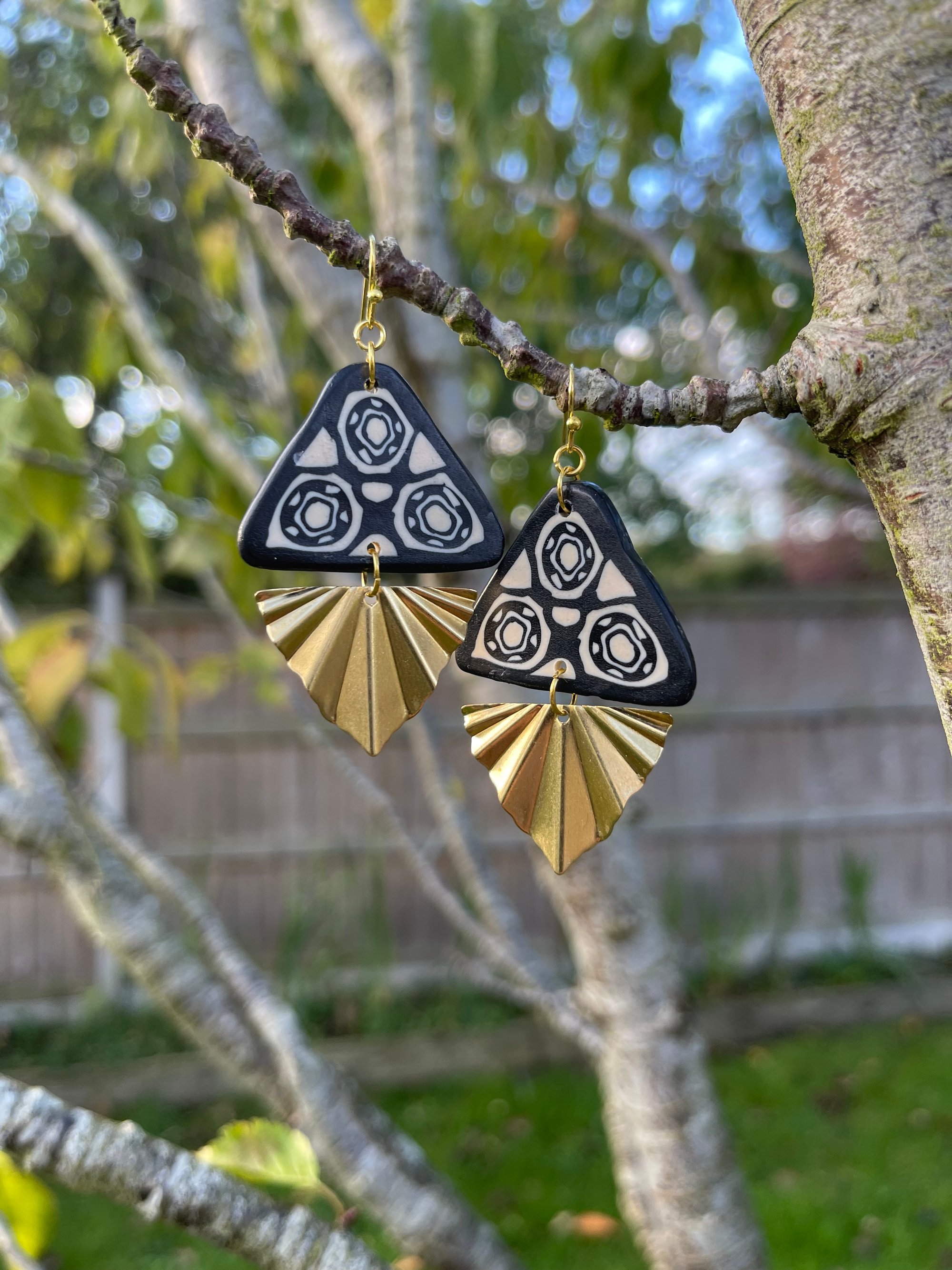 Handmade in my Bristol studio, each pair of Ivy Eclipse earrings is completely unique. Crafted from polymer clay and finished with solid brass, they’re lightweight, durable, and made to last. Every piece is carefully sanded smooth, sealed with care, and fitted with soft rubber backs for comfort and security.